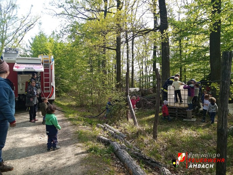 Am Vormittag des 11.April 2024 wurde ein Besuch des Waldkindergarten in Landersdorf abgehalten! Hierbei wurde den sehr interessierten Kindern und Betreuer/Innen Teile der Arbeit der Feuerwehr nähergebracht. Neben der Besichtigung unseres HLF 2 standen auch das Spritzen mit dem HD-Strahlrohr sowie das Befüllen der vor Ort stationierten Wasserbehälter am Programm. Fotos