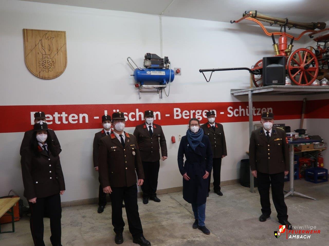 Eine Jahreshauptversammlung der etwas anderen Art wurde am 15.Jänner 2021 in Ambach abgehalten. Auf Anordnung des NÖ Landesfeuerwehrverbandes wurde trotz Lockdown auch bei der FF Ambach eine Jahreshauptversammlung mit Neuwahlen durchgeführt. Um diese den Vorschriften entsprechend durchführen zu können, wurde das Feuerwehrhaus "Corona-Sicher" hergerichtet und an alle anwesenden Kamerad/Innen FFP2-Masken sowie Desinfektionsmittel verteilt. Des weiteren wurde die Versammlung in einer strak verkürzten Form abgehalten. Neben allen anwesenden Kamerad/Innen durfte Feuerwehr Kommandant Oberbrandinspektor Stefan Ackerling auch unsere Frau Bürgermeisterin Karin Gorenzel begrüßen. Ackerling blickte auf ein sehr spezielles Jahr 2020 zurück. Ein Highlight war sicher der Einbau von 2 neuen Garagentoren, welcher durch viele Arbeitsstunden unserer Kamerad/Innen unterstützt wurde. Weiters wurden all unsere Heurigentische und Bänke in mühsamer Arbeit erneuert. Diese werden nun auf selbstgemachte fahrbare Metallgestelle im Feuerwehrhaus gelagert. Weniger erfreulich war das ausbleiben sämtlicher Veranstaltungen was finanziell sowie gesellschaftlich sicher eine Lücke hinterlassen hat. Ziele für das kommende Jahr sind die Renovierung des FF Hauses sowie der Einbau einer neuen Heizung. Auch die Übungsbeteiligung soll, wie im vergangenen Jahr, wieder hoch gehalten werden. Wenn es die Gesetze zulassen, wird es bestimmt auch wieder die eine oder andere Veranstaltung geben. Ein Hauptteil dieser Jahreshauptversammlung war die Neuwahl des Kommandos unter der Leitung von unserer Frau Bürgermeisterin. Für die Wahl zur Verfügung gestellt haben sich Oberbrandinspektor Stefan Ackerling (für den Kommandanten) sowie Brandinspektor Florian Ganzberger (für den Kommandant-Stellvertreter). Beide wurden von den anwesenden Kamerad/Innen wiedergewählt und führen diese Funktionen nun die nächste Periode (5 Jahre) aus. Auch Verwalter Friedrich Steidl wurde in seiner Funktion bestätigt und vom neuen Kommando wieder zum Verwalter ernannt. Im Anschluss führte KDT OBI Stefan Ackerling sämtliche Ernennungen und Beförderungen durch. Ernennungen: Löschmeisterin Kerstin Steidl zur Zug-Trupp Kommandantin Feuerwehrmann Markus Mayer zum Gehilfen des Verwaltungsdienstes und somit zum Verwaltungsmeister Beförderungen: Probefeuerwehrfrau Daniela Ackerling zur Feuerwehrfrau Probefeuerwehrmann Sebastian Deutsch zum Feuerwehrmann Hauptfeuerwehrmann Stefan Messerer zum Löschmeister Brandmeister Alois Wilhelm zum Oberbrandmeister Statistik 2020: 13 Einsätze 19 Übungen 12 Kursteilnahmen 53 Tätigkeiten Insgesamt mehr als 1300 Stunden ehrenamtlich für unsere Bevölkerung!!! Fotos