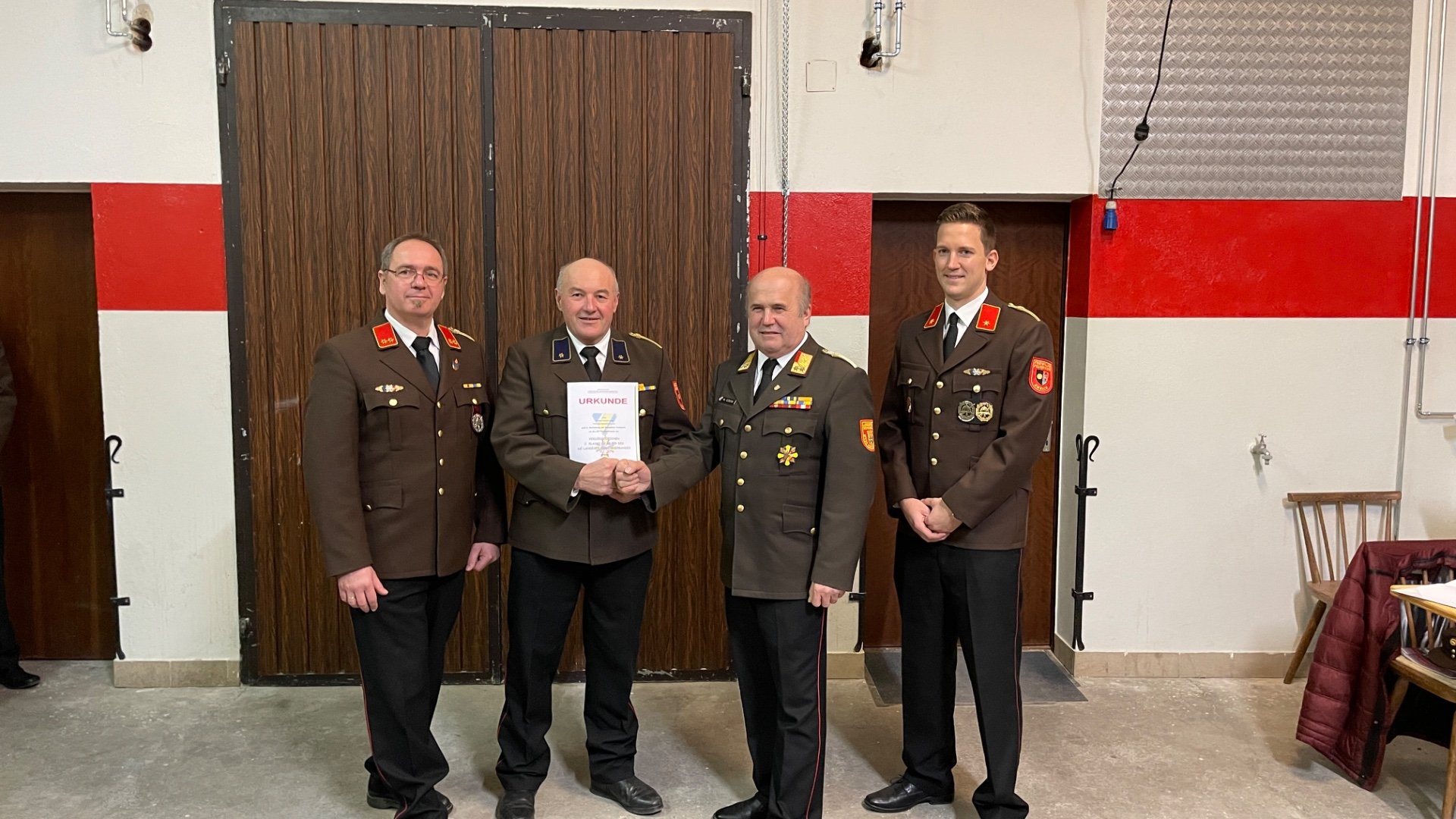 Am Abend des 07.01.2022 wurde die Jahreshauptversammlung im Feuerwehrhaus abgehalten. Unter strikter Einhaltung der der 3G-Regelung wurde das Feuerwehrhaus "Corona-Sicher" hergerichtet und an alle anwesenden Kamerad/Innen FFP2-Masken sowie Desinfektionsmittel verteilt. Um auf Nummer sicher zu gehen, wurden direkt vor der Versammlung auch Tests angeboten. Des Weiteren musste die Versammlung in etwas verkürzter Form abgehalten werden. Neben allen anwesenden Kamerad/Innen durfte Feuerwehr Kommandant Oberbrandinspektor Stefan Ackerling auch Bürgermeisterin Karin Gorenzel, Abschnittskommandant Brandrat Helmut Czech sowie Unterabschnittskommandant Hauptbrandinspektor Martin Hell begrüßen. Ackerling blickte auf ein sehr unterschiedliches Jahr 2021 zurück. Nach einem, durch die Pandemie verschuldeten, ruhigen ersten Halbjahr wurde die zweite Hälfte doch etwas intensiver. Den Anfang machte das massive Unwetter im August, welches alle Feuerwehren in Atem hielt. Alleine an diesem Abend wurden von uns 15 Einsätze abgearbeitet. Im Herbst kam es dann neben kleineren technischen Einsätzen zu mehreren Großbränden in unserer Gemeinde. Neben den Einsätzen wurde natürlich auch die eine oder andere Übung abgehalten, wie z.B.: die Unterabschnittsübung in Landersdorf, bei welcher auch eine Drehleiter mit eingebunden wurde. Auch im Feuerwehrhaus wurde fleißig gearbeitet. Neben einer Stiege, welche von der Fahrzeughalle in das Obergeschoss führt, wurde am Dachboden in mühevollen Arbeitsschritten ein Technikraum für unsere neue Heizung gebaut. Auch die Heizung selbst konnte installiert werden und wartet nur noch darauf in Betrieb genommen zu werden. Weniger erfreulich war wieder das Ausbleiben sämtlicher Veranstaltungen, was finanziell sowie gesellschaftlich sicher eine Lücke hinterlassen hat. Ziele für das kommende Jahr 2022 sind die Renovierung des FF Hauses weiterzuführen, die Heizung in Betrieb zu nehmen und einen Umkleide- sowie Aufenthaltsraum in das bestehende Feuerwehrhaus zu integrieren. Auch die Übungsbeteiligung soll wieder hoch gehalten werden. Wenn es die aktuellen Covid-Bestimmungen erlauben, wird es bestimmt die eine oder andere Veranstaltung geben. Leider mussten Kdt. Stefan Ackerling sowie Kdt.-Stv. Florian Ganzberger an diesem Abend ein besonderes Mitglied der FF Ambach in die "Feuerwehrpension" verabschieden. Nach 47-jähriger Mitgliedschaft, davon 21 Jahre als Verwalter, darf unser Friedrich Steidl seinen wohlverdienten Ruhestand antreten. Fritz trat am 06.01.1975 unserer Feuerwehr bei. Nach sämtlichen Kursen wurde er 2001 zum Leiter des Verwaltungsdienstes ernannt. Diese Aufgabe erfüllte er stets gewissenhaft und mit einer peniblen Genauigkeit. Neben dem „Ehrenzeichen für vieljährige verdienstvolle Tätigkeiten auf dem Gebiet des Feuerwehr und Rettungswesens – 40 Jahre“ wurde er mit dem "Verdienstzeichen des NÖ Landesfeuerwehrverband 3.Klasse in Bronze" sowie dem "Verdienstzeichen des Österreichischen Bundesfeuerwehrverband 3.Stufe" ausgezeichnet. Als Anerkennung für seine Arbeit wurde Friedrich Steidl bei dieser Jahreshauptversammlung zum Ehrenverwalter ernannt und anschließend von Abschnittsfeuerwehrkommandant Helmut Czech mit dem "Verdienstzeichen des NÖ Landesfeuerwehrverband 2.Klasse in Silber" ausgezeichnet. Zum neuen Leiter des Verwaltungsdienstes wurde VM Markus Mayer ernannt, welcher bereits seit einem Jahr in die Geschicke des Verwalters eingeschult wird. Im Anschluss führte KDT OBI Stefan Ackerling sämtliche Ernennungen und Beförderungen durch. Ernennungen: Gehilfe des Verwaltungsdienstes Markus Mayer zum Leiter des Verwaltungsdienstes Beförderungen: Hauptfeuerwehrfrau Bettina Stoll zur LöschmeisterIn Verwaltungsmeister Markus Mayer zum Verwalter Statistik 2022: 24 Einsätze 9 Übungen 11 Kursteilnahmen 98 diverse Tätigkeiten Insgesamt 142 Tätigkeiten mit mehr als 1.690 Stunden ehrenamtlich für unsere Bevölkerung!!! Fotos Fotos FF Ambach sowie Thomas Heumesser