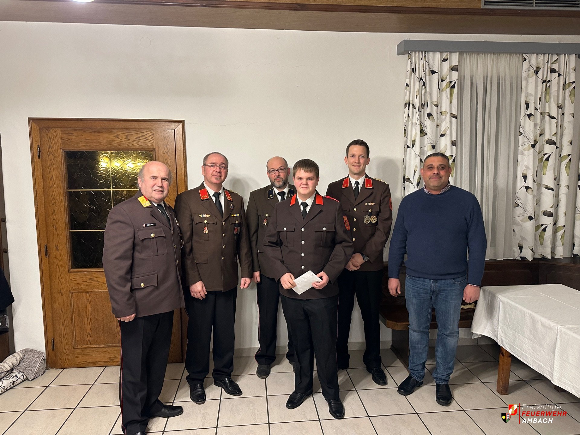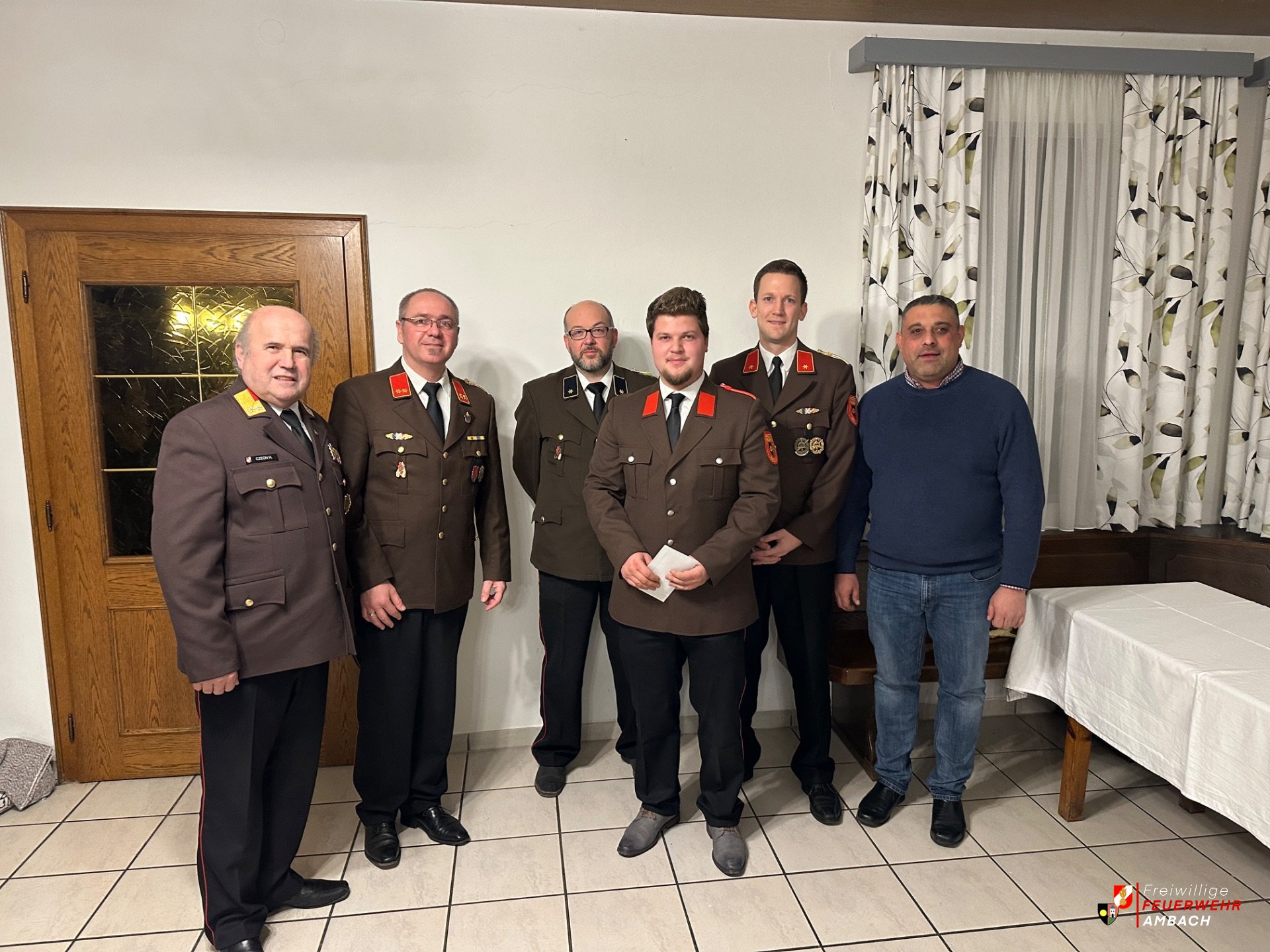 Die diesjährige Jahreshauptversammlung der Freiwilligen Feuerwehr Ambach fand am 10.01.2025 im Gasthaus Plank statt. Kommandant Oberbrandinspektor Stefan Ackerling durfte, in Vertretung der Bürgermeisterin, den geschäftsführenden Gemeinderat Daniel Zimmel, Abschnittsfeuerwehrkommandant Helmut Czech, Unterabschnittskommandant Mathias Kerndler sowie die zahlreich erschienenen Kamerad/Innen begrüßen. Ackerling blickte auf ein geschichtsträchtiges Jahr 2024 zurück. Die wärmetechnische Sanierung des Feuerwehrhauses wurde abgeschlossen und der neue Aufenthaltsraum im Obergeschoss fertiggestellt. Des Weiteren wurde zu Beginn des Jahres mit einem kleinen Team eine äußerst gelungene „100 Jahre FF Ambach Chronik“ erschaffen. So wie jedes Jahr, war auch das Ende April veranstaltete Maibaumaufstellen ein voller Erfolg. Ein Highlight des vergangenen Jahrs war bestimmt das Feuerwehrfest mit der dort stattfindenden 100 Jahr Feier. Bei hochsommerlichen Temperaturen durfte sich die FF Ambach über zahlreichen Besuch freuen. Wenige Tage später folgte die Hochwasserkatastrophe, bei welcher unsere Feuerwehr, weit über die Gemeindegrenzen hinaus, zahlreiche Tage und Stunden im Einsatz stand. Für unser Hilfeleistungsfahrzeug wurde Mitte des Jahres die lang ersehnte Wärmebildkamera angeschafft. Ein weiterer wichtiger Schritt in Richtung mehr Sicherheit für unsere Einsatzmannschaft. Das Jahr 2025 wird voraussichtlich nicht ruhiger werden, denn ein Zubau für Sanitäranlagen steht am Programm! Neuaufnahme: Probefeuerwehrmann Michael Stanzel Beförderungen: Probefeuerwehrmann Simon Fidelsberger zum Feuerwehrmann Probefeuerwehrmann Markus Stanzel jun. zum Feuerwehrmann Probefeuerwehrmann Markus Stanzel jun. zum Feuerwehrmann Löschmeister Dominik Zuccarello zum Oberlöschmeister Ernennung: Dominik Zuccarello zum Sachbearbeiter Feuerwehrmedizinischer Dienst Mitglieder per 10.01.2025: 37 Aktive 8 Reservisten Gesamt: 45 Mitglieder Statistik 2024: 33 Einsätze 17 Übungen 6 Kursteilnahmen 2 Bewerbsteilnahmen 269 diverse Tätigkeiten Insgesamt 327 Ereignisse mit mehr als 3.991 Stunden ehrenamtlich für unsere Bevölkerung!!! Fotos