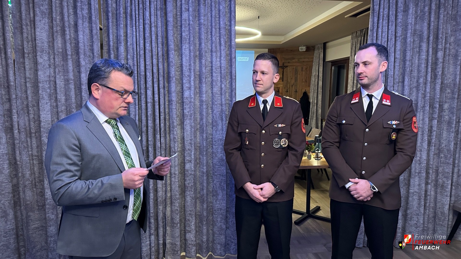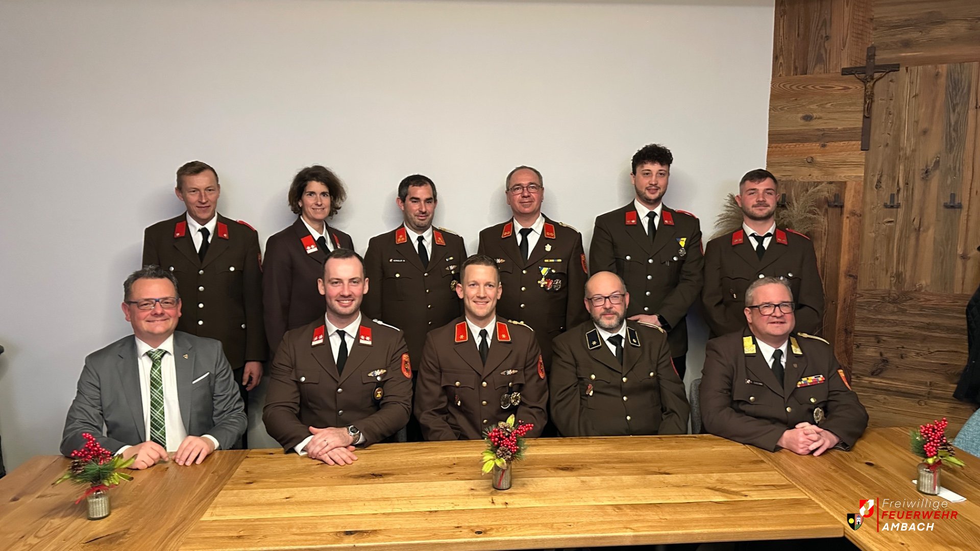 Am 09.01.2026 fand die Jahreshauptversammlung samt Neuwahl des Kommandos der Freiwilligen Feuerwehr Ambach im Gasthaus Plank statt. Neben der Neuwahl des Kommandos standen auch die Rückschau auf das vergangene Jahr und die Vorstellung neuer Pläne auf dem Programm. Kommandant OBI Stefan Ackerling begrüßte die zahlreich erschienenen Kameradinnen und Kameraden, Bürgermeister Ing. Peter Hießberger, Unterabschnittskommandant HBI Matthias Kerndler und Leiter des Verwaltungsdienstes des BFKDO VR Romano Casoria. Ackerling blickte auf ein ruhiges Jahr 2025 zurück, in dem unter anderem das traditionelle Maibaumaufstellen Ende April stattfand, das wieder viele Besucher aus den umliegenden Ortschaften anzog. Darüber hinaus wurden verschiedene Übungen und Kurse besucht. Technische Einsatzhandschuhe, Regenbekleidung und Einsatz T-Shirts wurden angeschafft. Kommandant OBI Stefan Ackerling, der die Freiwillige Feuerwehr Ambach 12 Jahre lang führte, hatte im Herbst 2025 bekannt gegeben, dass er für die nächste Periode nicht mehr zur Wahl antreten werde. Nach zahlreichen Gesprächen und Sitzungen innerhalb der Feuerwehr stellte sich der bisherige Kommandant-Stellvertreter BI Florian Ganzberger zur Wahl und wurde einstimmig zum neuen Kommandanten gewählt. Als sein Stellvertreter wurde OLM Dominik Zuccarello ebenfalls einstimmig gewählt. Bürgermeister Ing. Peter Hießberger nahm die Angelobung der neuen Führung vor: Florian Ganzberger als Kommandant und Dominik Zuccarello als Kommandant-Stellvertreter. Im Anschluss ernannte OBI Ganzberger Florian als erste Amtshandlung V Markus Mayer zum Leiter des Verwaltungsdienstes. Des Weiteren wurden Neuerungen im Dienstpostenplan vorgestellt und einige Beförderungen und Ernennungen durchgeführt: