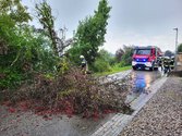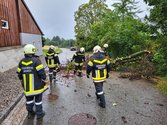 Am Freitagnachmittag des 12.Juli 2024 wurde die Freiwillige Feuerwehr Ambach zu einem Unwettereinsatz alarmiert. Grund dafür war ein Unwetter, dessen Sturmböen einen Baum auf eine Gemeindestraße in Landersdorf fallen ließen. Nach wenigen Minuten rückten beide Fahrzeug zum Einsatzort aus. Dort angekommen wurde der Baum mittel Motorkettensäge abgetragen und am Straßenrand gesichert abgelegt. Im Anschluss daran musste der Ortskern von Ambach mit der am Hilfeleistungsfahrzeug befindlichen Straßenwaschanlage von angeschwemmten Schotter gereinigt werden. Nach ca. 1,5 Stunden konnte die Einsatzbereitschaft wieder hergestellt werden. Fotos
