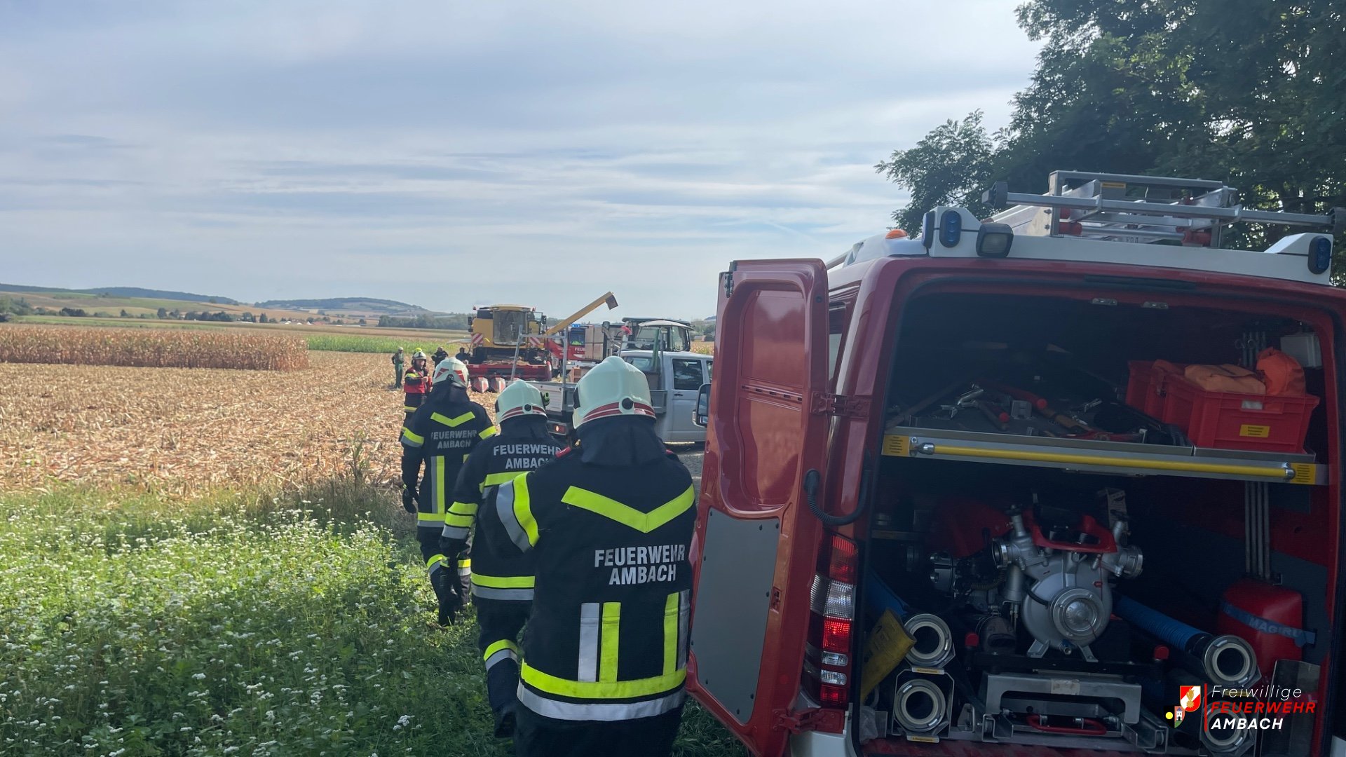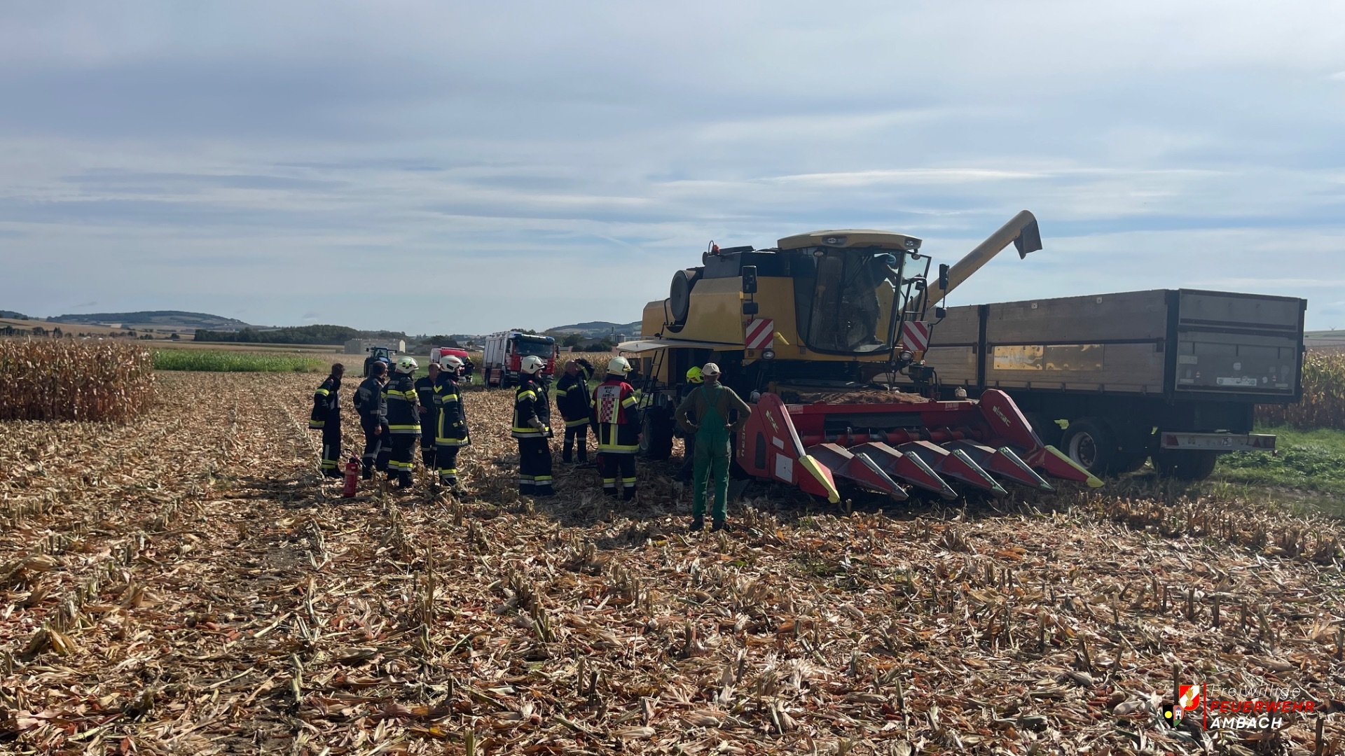 Am Vormittag des 11.09.2024 wurden die Gemeindefeuerwehren zu einem Brand eines landwirdschaftlichen Fahrzeuges alarmiert. Da sich unser Hilfeleistungsfahrzeug gerade in der Werkstatt befand, rückte das KLF mit insgesamt 6 Mann zum Einsatzort nach Hausheim aus. Aufgrund eines defekten Lagers eines Mähdreschers kam es zu einer geringen Brandentwicklung, welche jedoch noch vor der Ankunft der Feuerwehren im Großen und Ganzen gelöscht werden konnte. Aufgabe der Feuerwehren war es lediglich Nachlöscharbeiten durchzuführen. Fotos