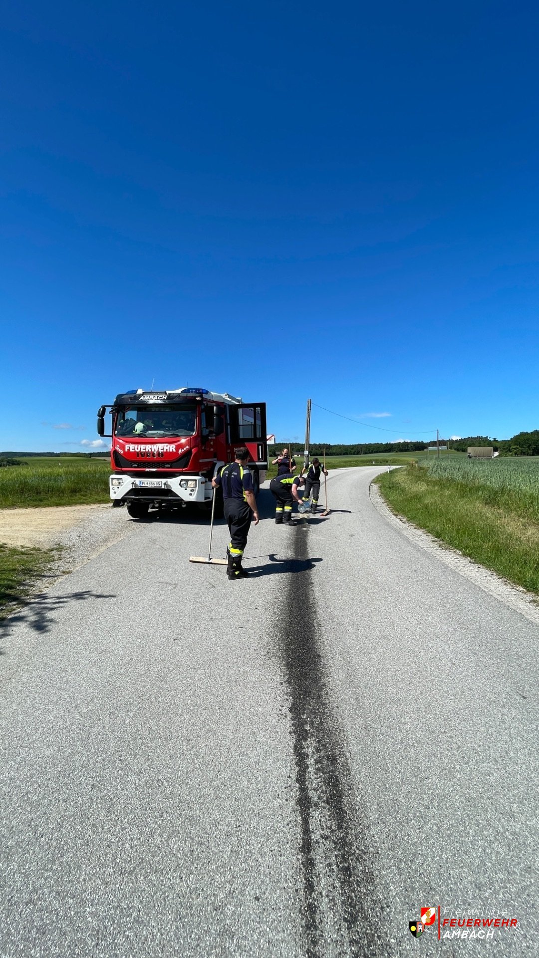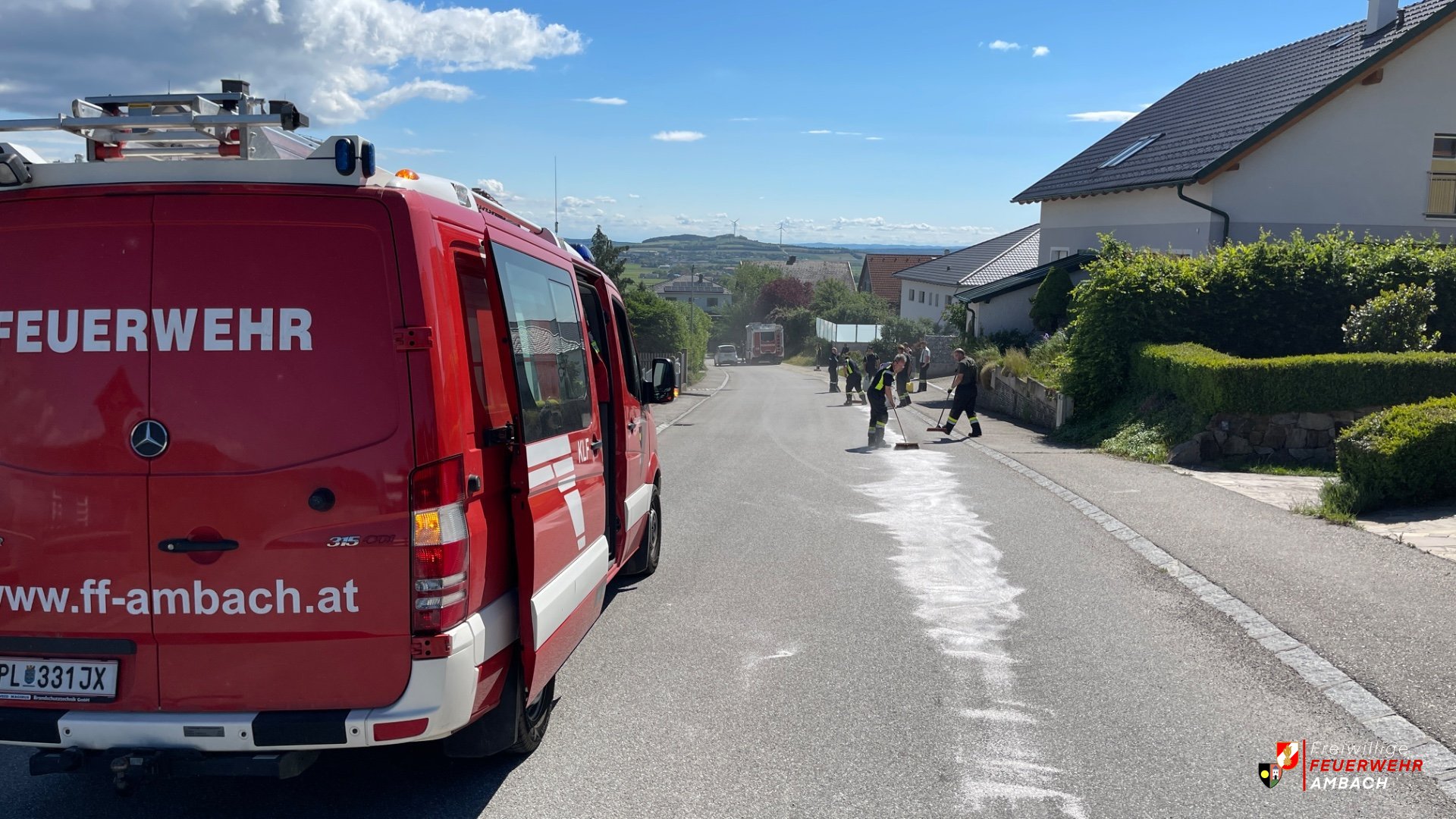 Am Sonntagvormittag des 19. Mai 2024 wurde die FF Ambach zu einer Ölspur alarmiert. Rasch rückten das HLF 2 sowie KLF mit insgesamt 11 Kameraden zum Einsatzort aus. Aus unbekannter Ursache verlor ein Fahrzeug auf der Länge von ca. 3 Kilometer Öl. Dieses wurde von der Feuerwehr mittels Ölbindemittel gebunden und die Straße somit wieder sicher befahrbar gemacht. Nach ca. 2 Stunden wurde der Einsatz beendet. Fotos