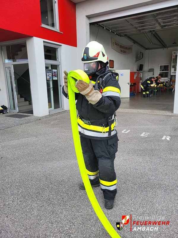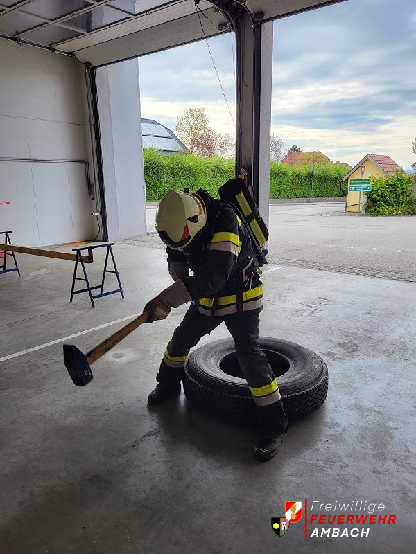Die Atemschutzgeräteträger/Innen der FF Ambach wurden am Samstag den 06.April 2024 auf deren körperliche Fitness getestet. Neben der medizinischen Tauglichkeit, müssen alle aktiven Atemschutzgeräteträger/Innen den körperlichen Atemschutz-Leistungstest (Finnentest) positiv absolvieren. Dieser Test dient zur Feststellung der Leistungsfähigkeit der einzelnen Kameraden/Innen und muss jährlich durchgeführt werden. Jeder muss 5 Übungen nach streng vorgegebenen Zeitplan absolvieren. Die 5 Übungen werden in voller Einsatzuniform (Stiefel, Hose, Jacke, Helm, Handschuhe, Atemschutzmaske und natürlich dem Atemschutzgerät) durchgeführt: 1. 100 Meter gehen + 100 Meter gehen mit 2 Kanister (a 16kg)! 2. 90 Stufen rauf und runter! 3. Mit einem 6 kg schweren Hammer einen 47 kg schweren LKW-Reifen 3 Meter mit den Hammer nach vorne schlagen! 4. 6 mal 3 Hindernisse (60cm Höhe) abwechselnd oben drüber unten durch! 5. Einen 15 Meter langen C-Schlauch aufrollen! Ein großer Dank gilt der FF Oberwölbling für die Organisation des Finnentests. Fotos