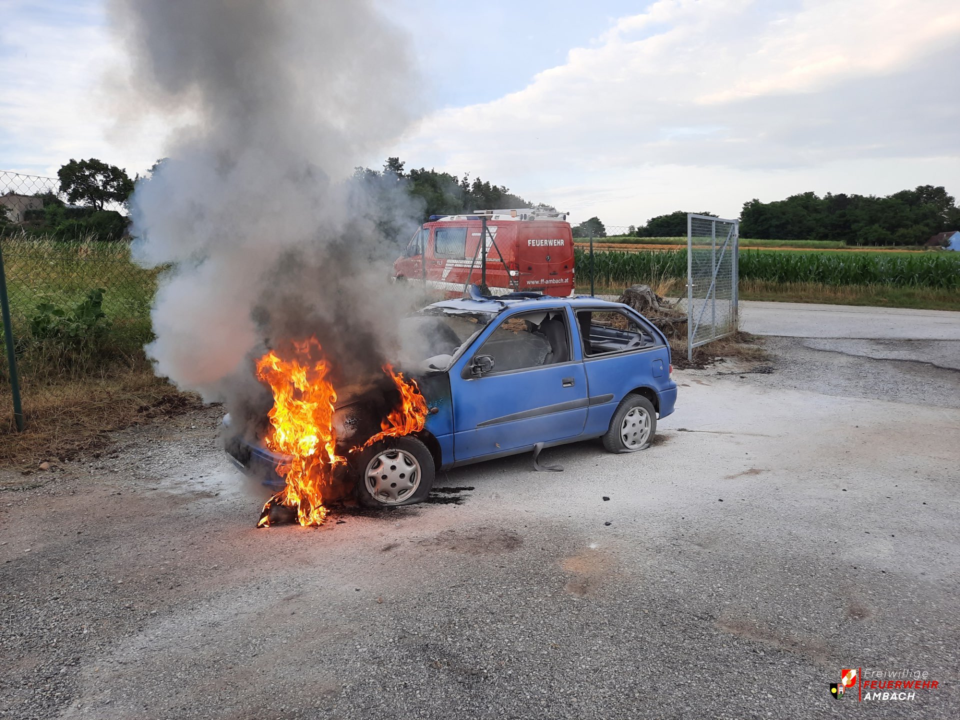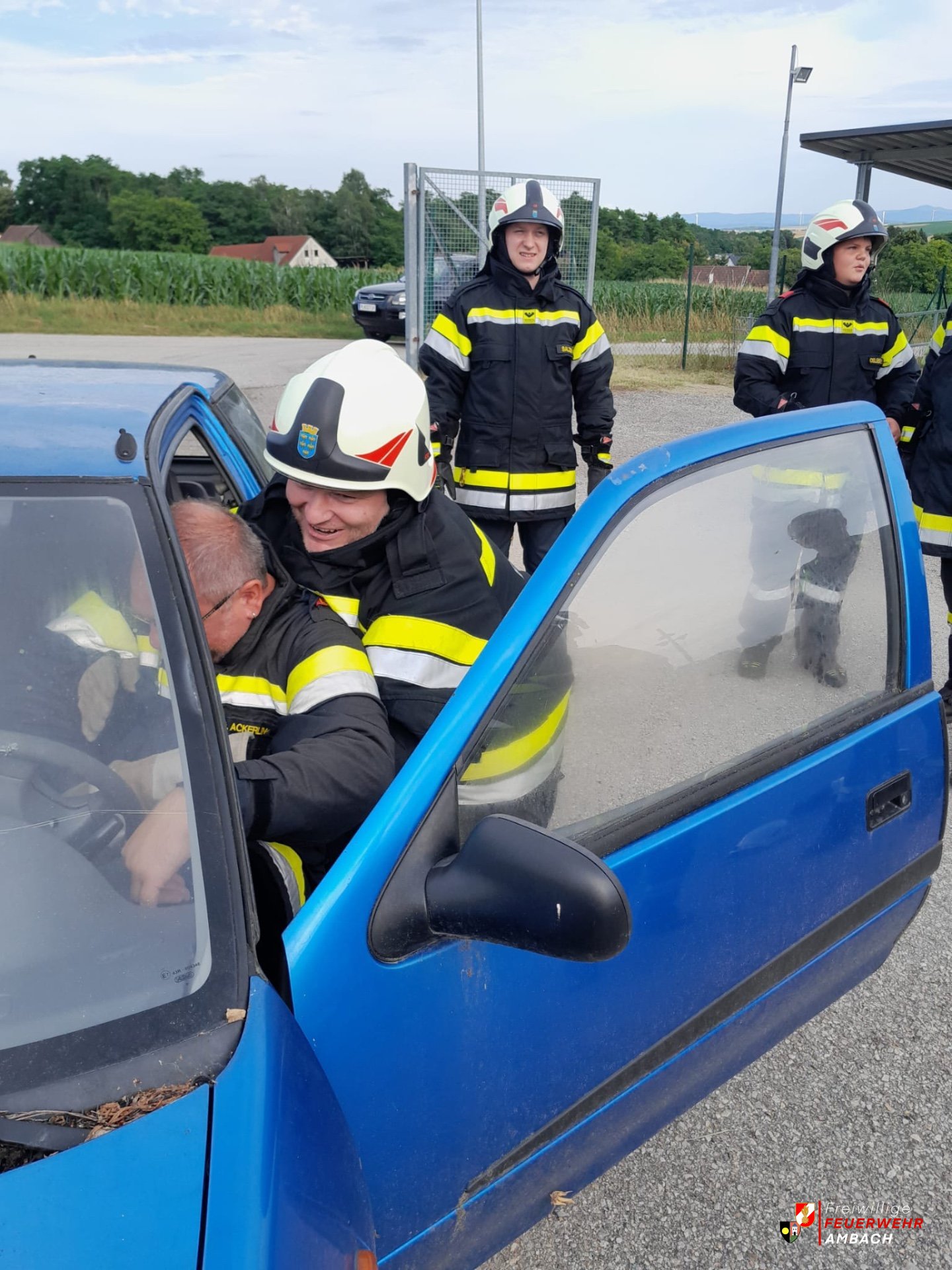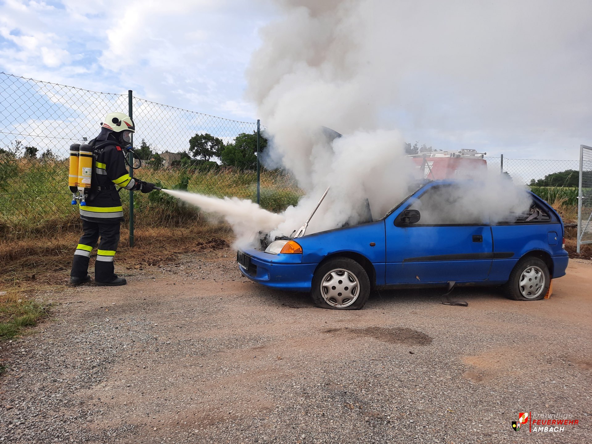 Am Donnerstag den 06.07.2023 wurde eine Übung der seltenen Art abgehalten. Da der FF Ambach ein ausgedientes Auto zur Verfügung gestellt wurde, konnten sämtliche Geräte der Feuerwehr in der Praxis ausprobiert werden. Zu Beginn wurde die Menschenrettung aus dem Fahrzeug mittels Rautekgriff geübt. Im Anschluss daran wurde, mit den unserer Feuerwehr zur Verfügung stehenden Mitteln, mehrere Rettungswege geschaffen. Weiters konnte ein Brand im Motorraum mittels Pulverlöscher abgelöscht werden ehe das Vorgehen bei einem klassischen Fahrzeugbrand geübt wurde. Dieser konnte mittels Schaum-Schnellangriffleitung erfolgreich bekämpft werden. Fotos}